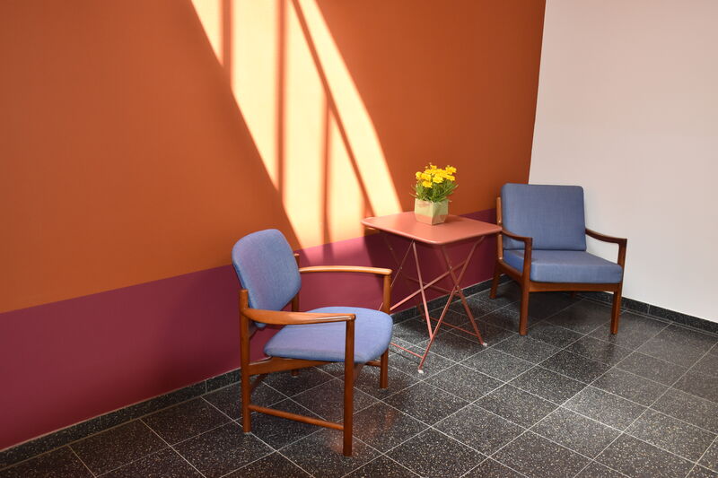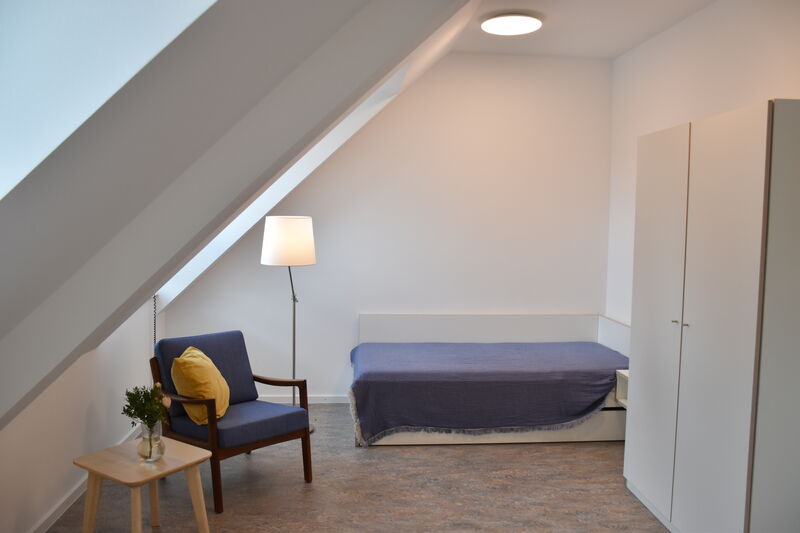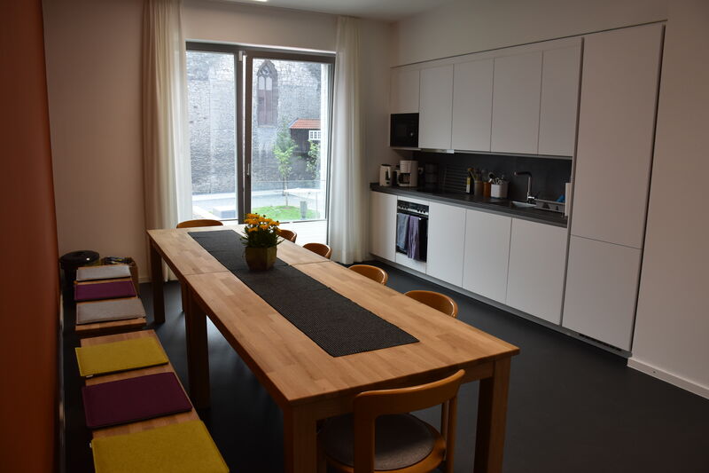 Im Gästebereich des Studienhauses stehen 10 Einzelzimmer mit eigenem Bad und eine große Wohnküche zur Selbstverpflegung zur Verfügung. Zwei Gästezimmer sind barrierefrei. Außerdem gibt es im Haus einen Personenaufzug. Den Gästen stehen darüber hinaus ein Leseraum mit Loggia und das Außengelände des Forum Kirche und Diakonie zur Verfügung.